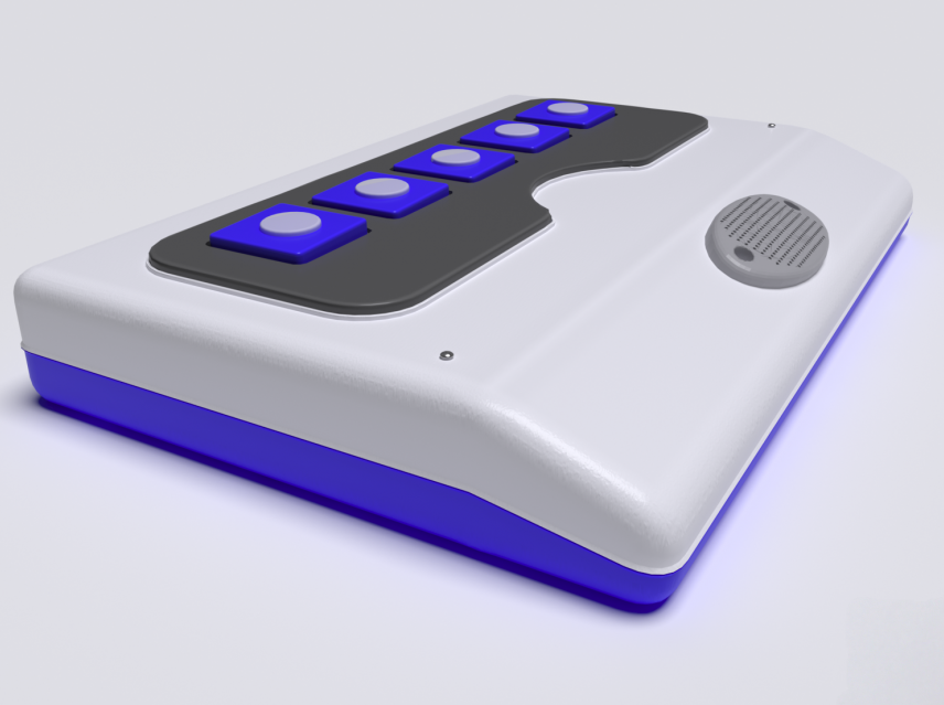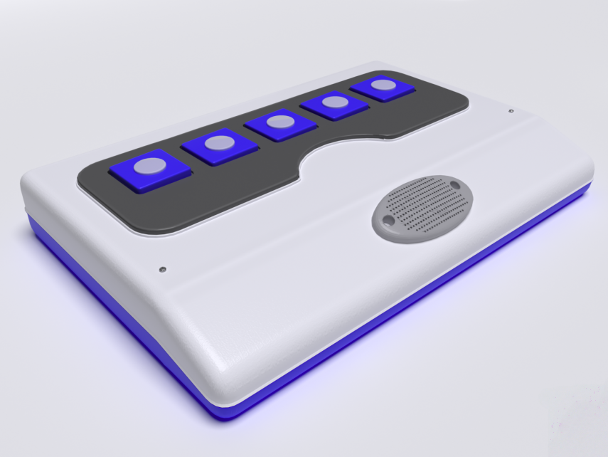 Коммуникатор с независимой словесной передачей информации 180 сообщений предназначен для развития невербальных (неговорящих) детей путём налаживания контакта при помощи технологии радиочастотной идентификации. Представляет собой прямоугольный корпус, на котором размещены 5 кнопок для воспроизведения записанных сообщений. Устройство изготовлено из высококачественного ударопрочного пластика, имеет обтекаемые плавные формы без острых краёв и углов.