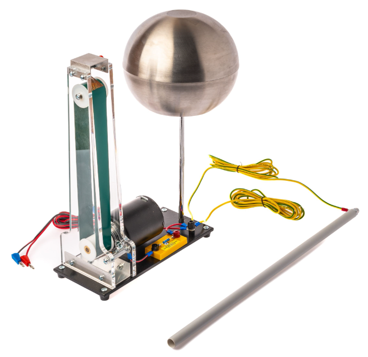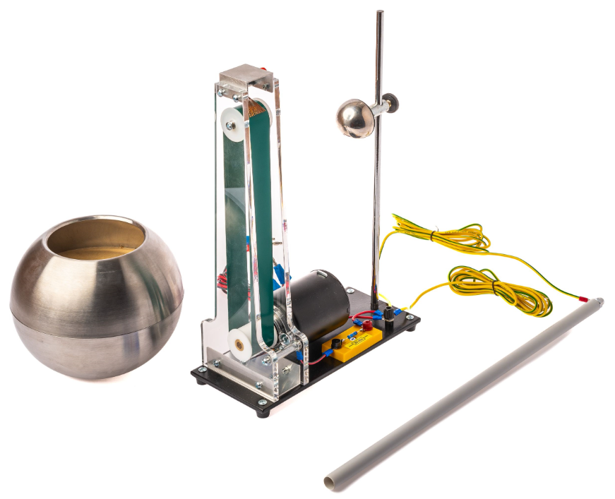 Набор позволяет познакомиться с переносом зарядов и созданием высокого напряжения в опытах по электростатике, которые иллюстрирует генератор Ван-де-Граафа.