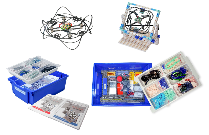 Образовательный модуль позволяет собрать модель квадрокоптера из деталей набора, а после экспериментировать с ним, проводить лабораторные работы, программировать, запускать и планировать траекторию его полетов.